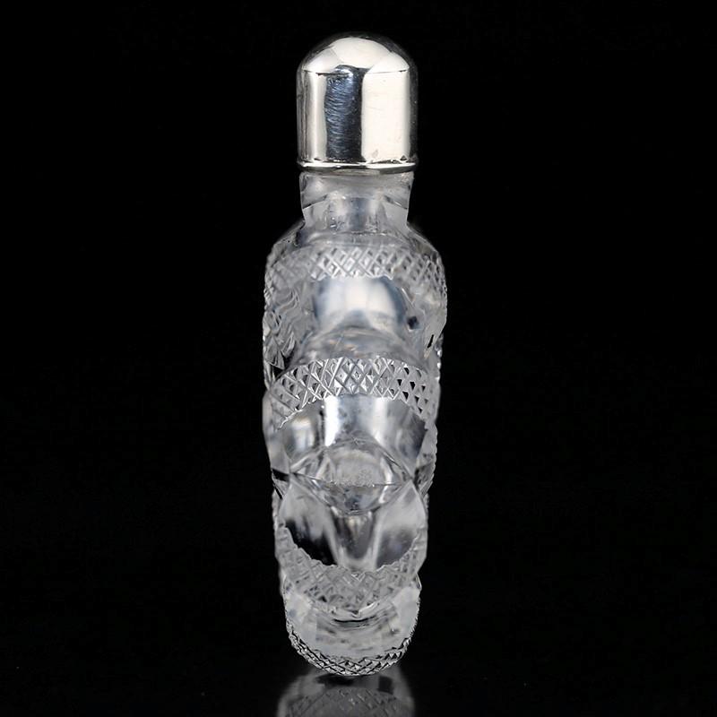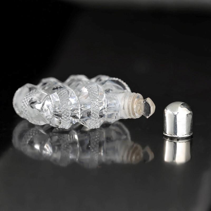 ENQUIRE ABOUT C.1870 FRENCH CUT CRYSTAL SCENT PERFUME BOTTLE, SILVER TOP