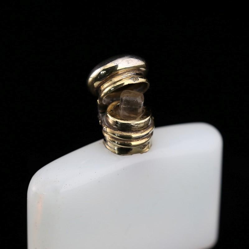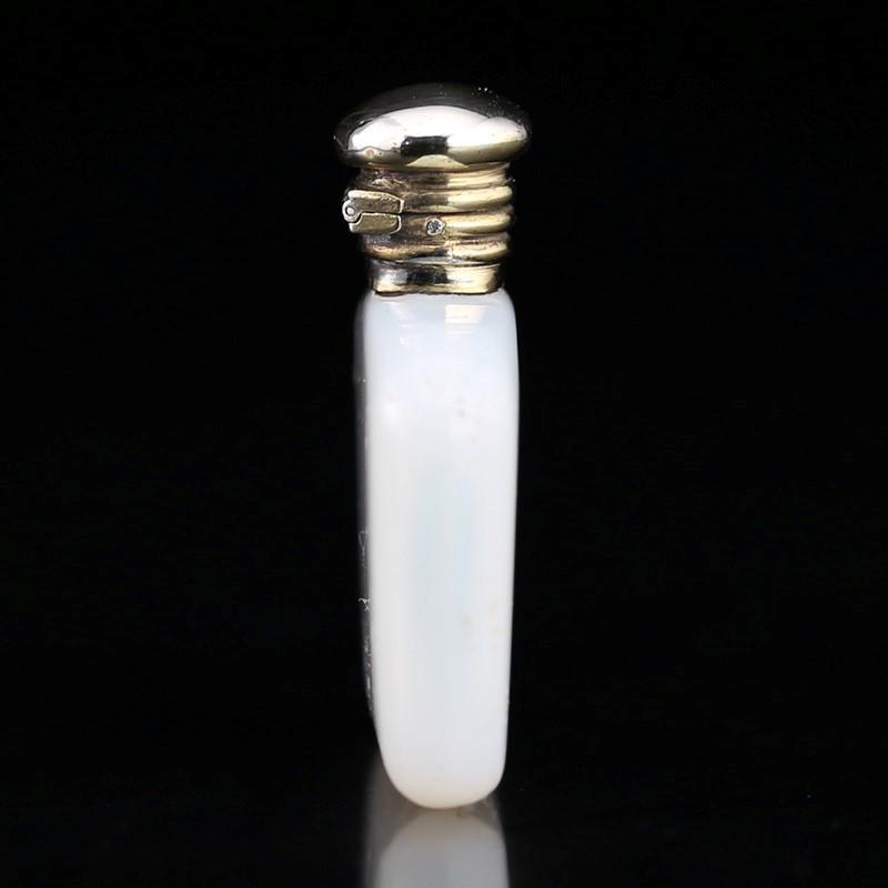 ENQUIRE ABOUT C.1870 OPALINE GLASS SCENT PERFUME BOTTLE, SILVER GILT TOP