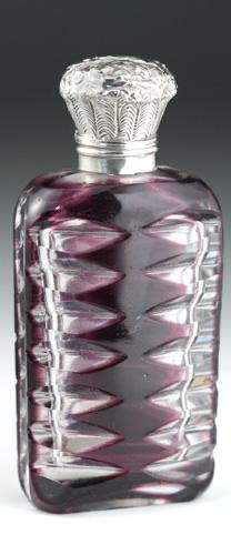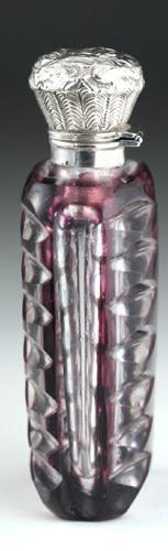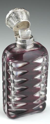 ENQUIRE ABOUT C.1880 AMETHYST OVERLAY CUT CRYSTAL SCENT PERFUME BOTTLE