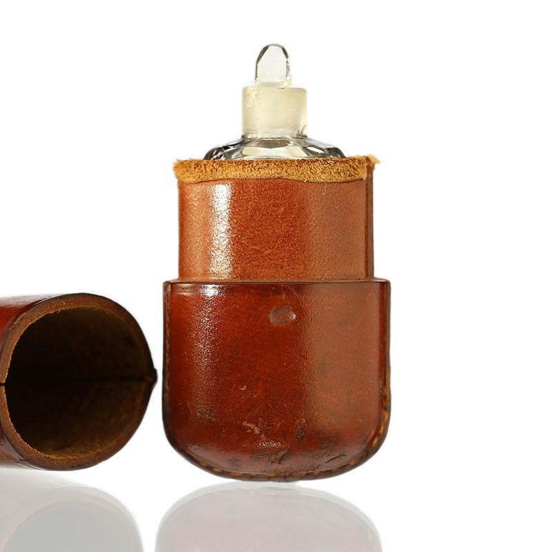 c.1880 Cut Crystal Scent Bottle in Leather Etui