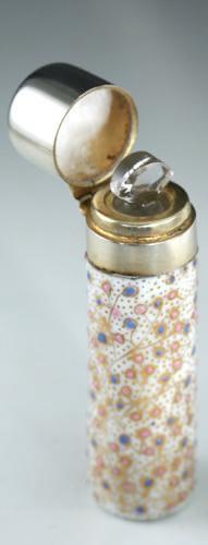 c.1880 RAISED ENAMEL DECORATED PORCELAIN CYLINDER SCENT PERFUME BOTTLE