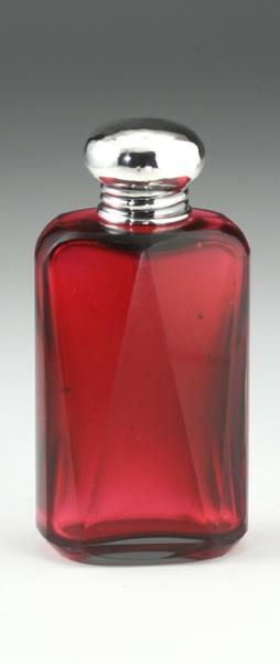 c.1890 DEEP CRANBERRY SCENT PERFUME BOTTLE, SILVER TOP