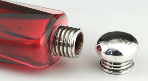 ENQUIRE ABOUT C.1890 DEEP CRANBERRY SCENT PERFUME BOTTLE, SILVER TOP