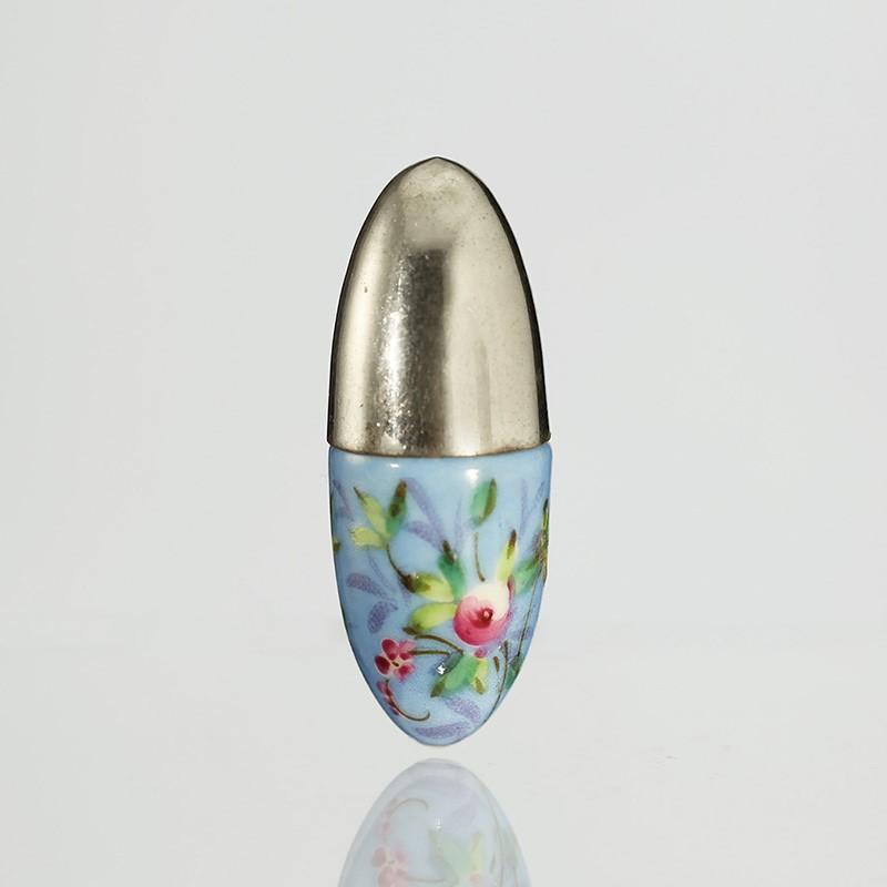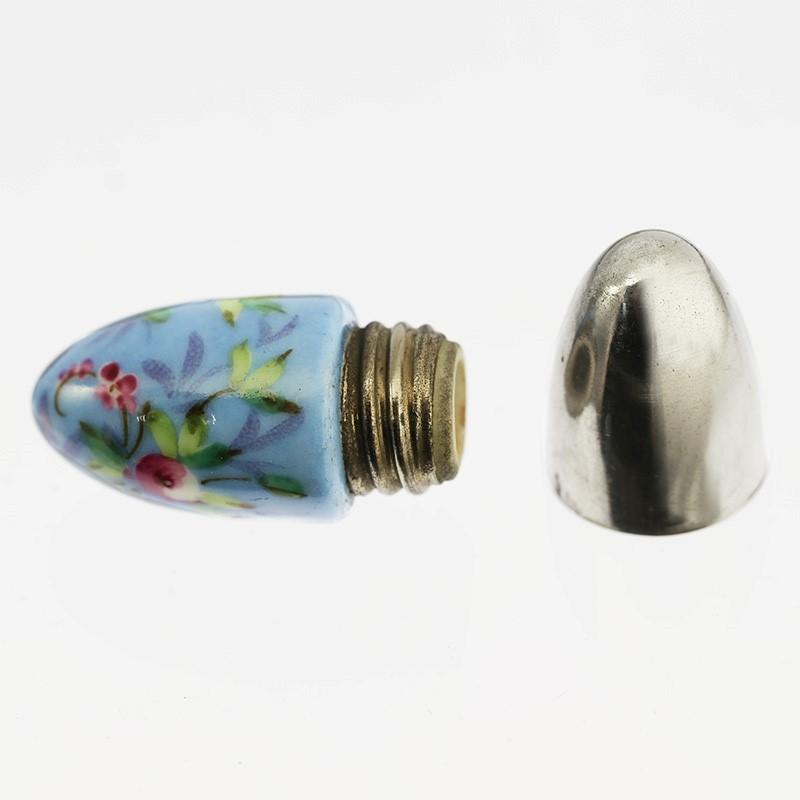 c.1890 enamelled porcelain lozenge scent perfume bottle, plate top