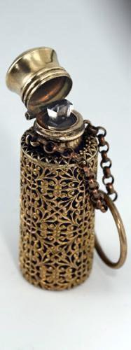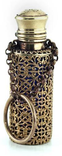 ENQUIRE ABOUT C.1890 FILIGREE CASED BLUE GLASS SCENT PERFUME BOTTLE