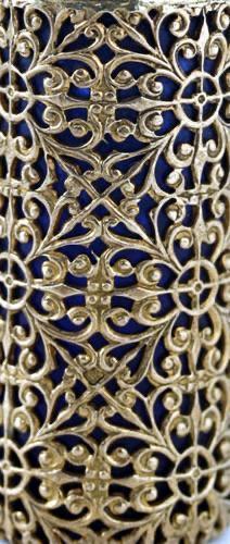 c.1890 FILIGREE CASED BLUE GLASS SCENT PERFUME BOTTLE