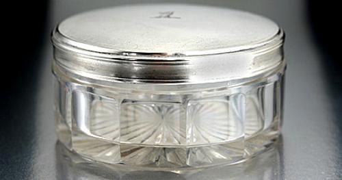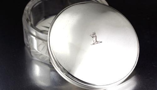 c.1900 CRYSTAL DRESSING TABLE PERFUME SCENT POT, PLATED LID