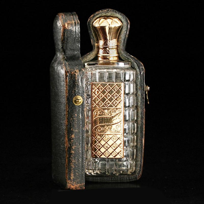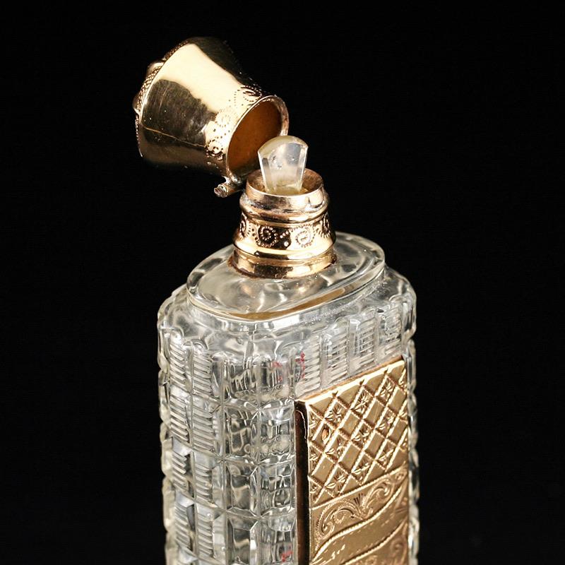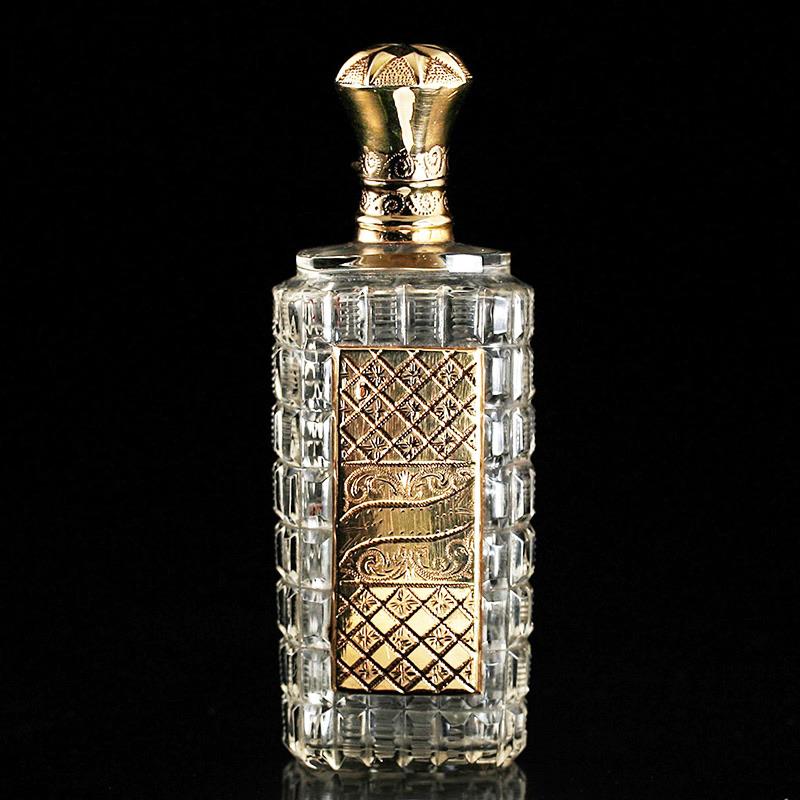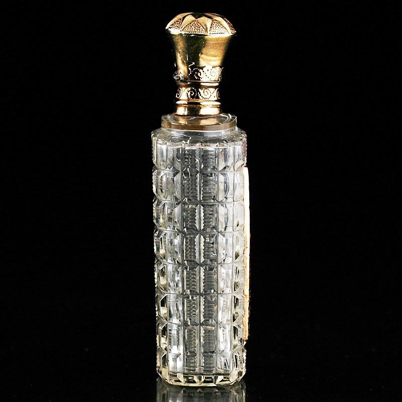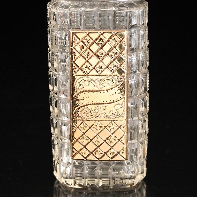 c.1910 boxed Dutch cut crystal scent perfume bottle, 14ct. gold mounts