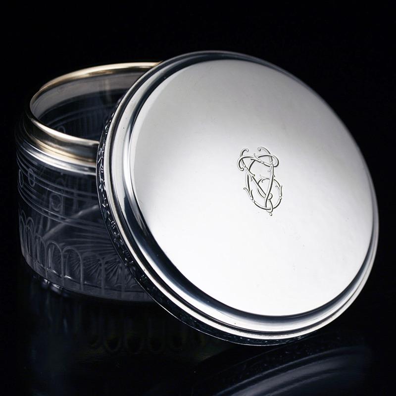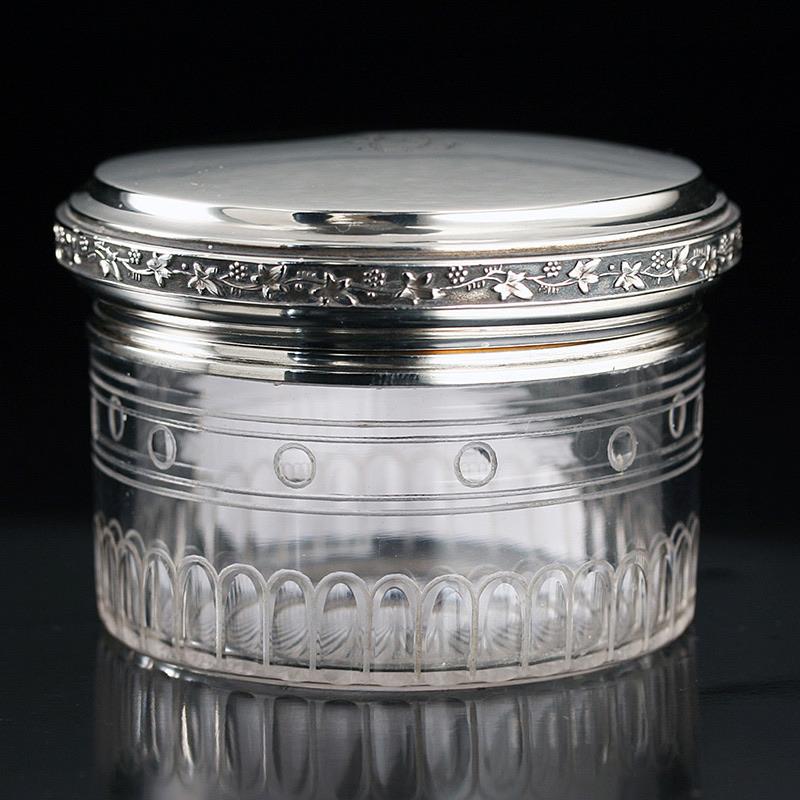 c.1910 French engraved crystal dressing table jar and silver cover #2