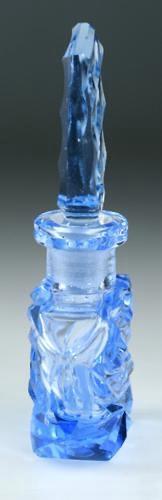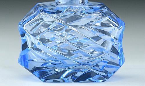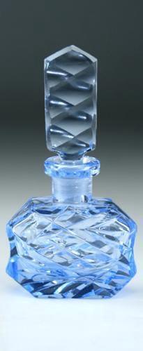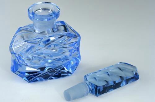 c.1930s AQUA BLUE CUT GLASS DECO SCENT PERFUME BOTTLE & STOPPER