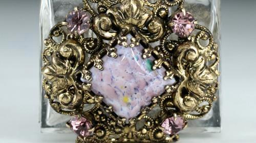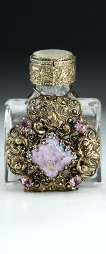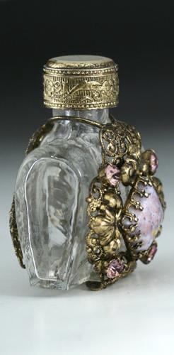 c.1950s FILIGREE CAGED AND JEWELLED CZECHOSLOVAKIAN SCENT PERFUME BOTTLE