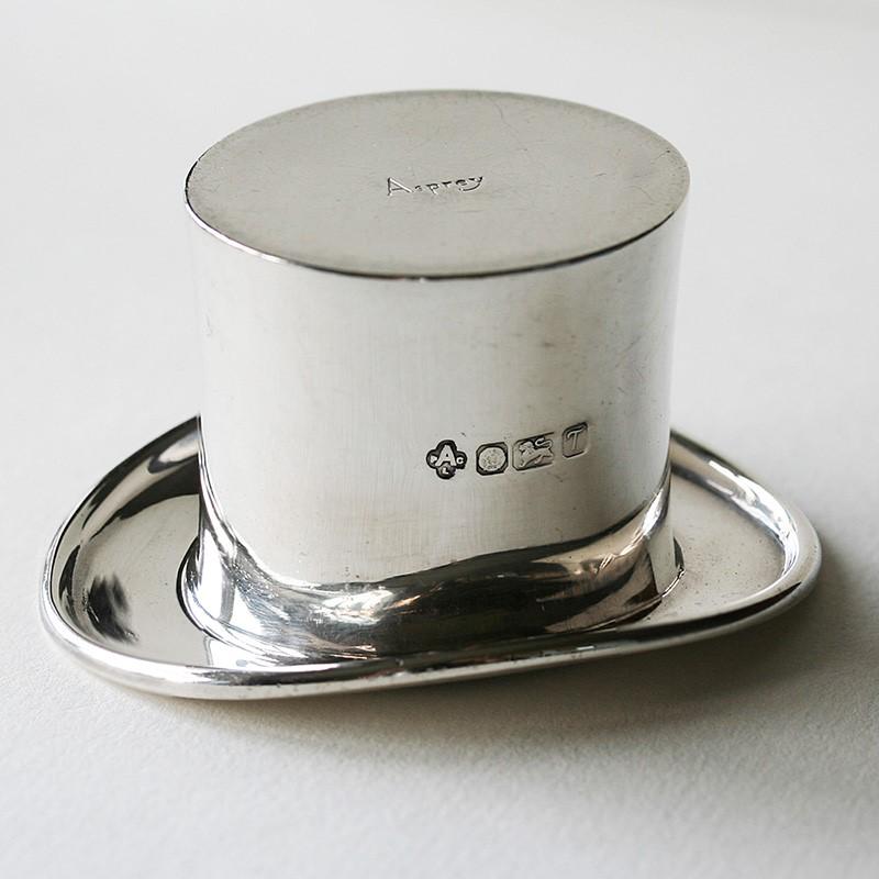 ENQUIRE ABOUT 1993 ASPREY LONDON NOVELTY STERLING SILVER TOP HAT SPIRIT MEASURE 50GM/1.12 TROY OZ.