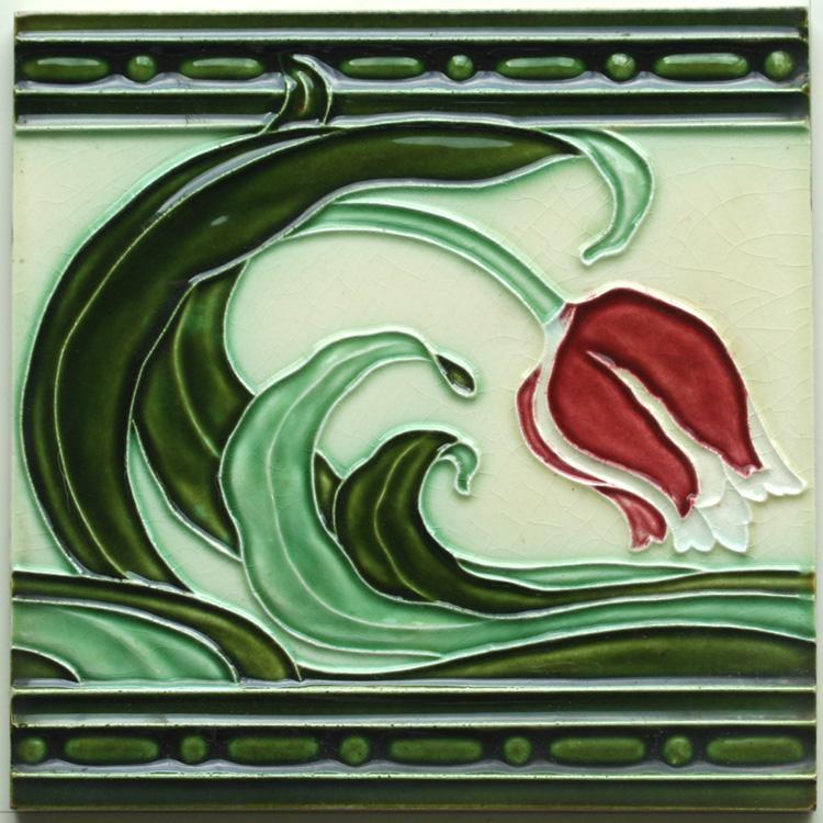 20 c.1920s CERAMIQUES HERENT STYLISED TULIP TILES