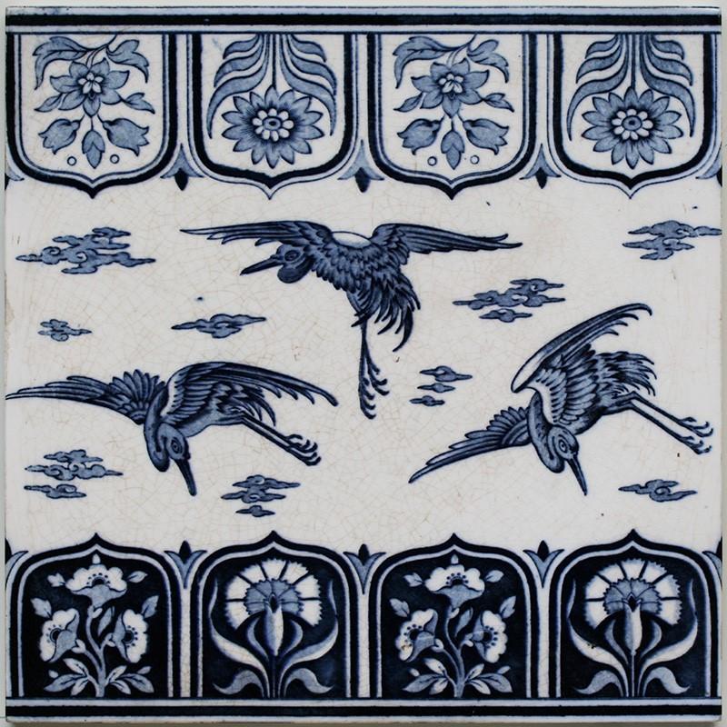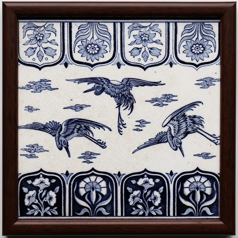 c.1870-75 Minton 8 Aesthetic Cranes tile, attributed to Christopher Dresser, framed