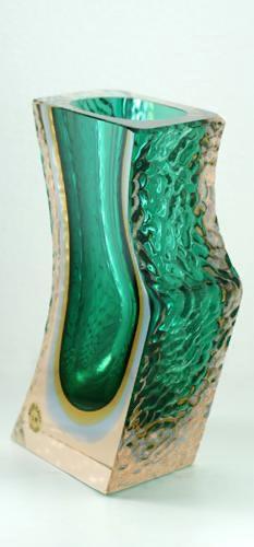 ENQUIRE ABOUT 1950S-60S DOUBLE CASED & STRUCTURED MURANO GLASS VASE, PROBABLY MANDRUZZATO