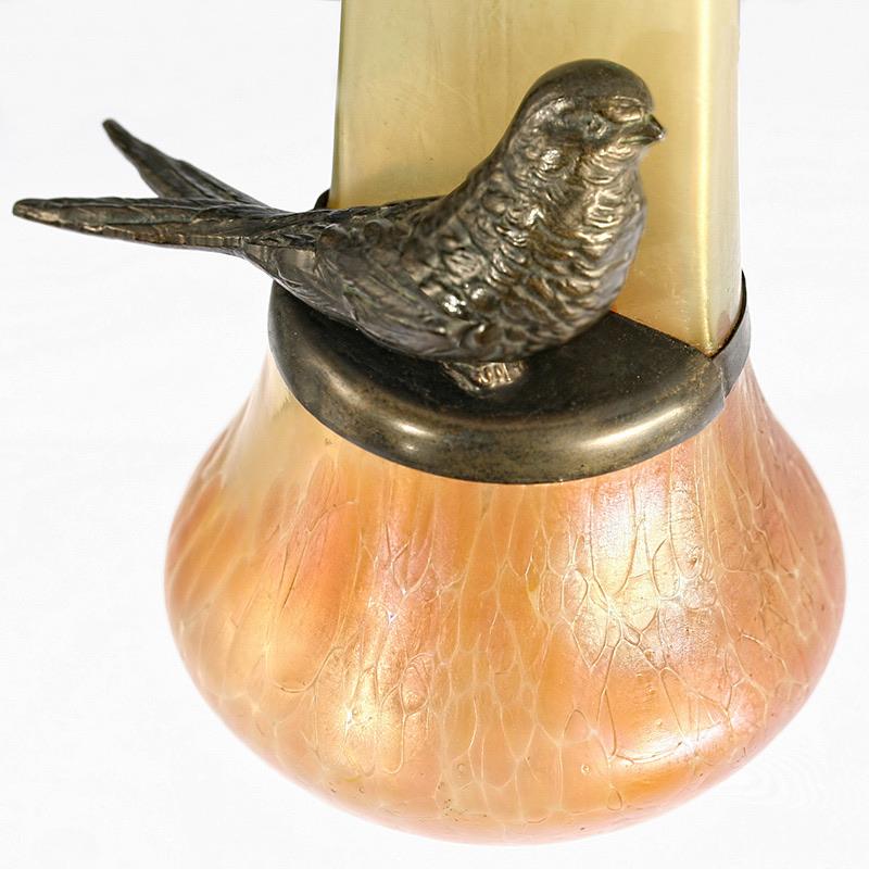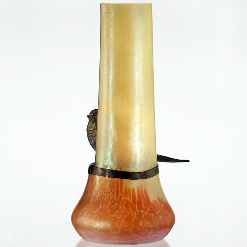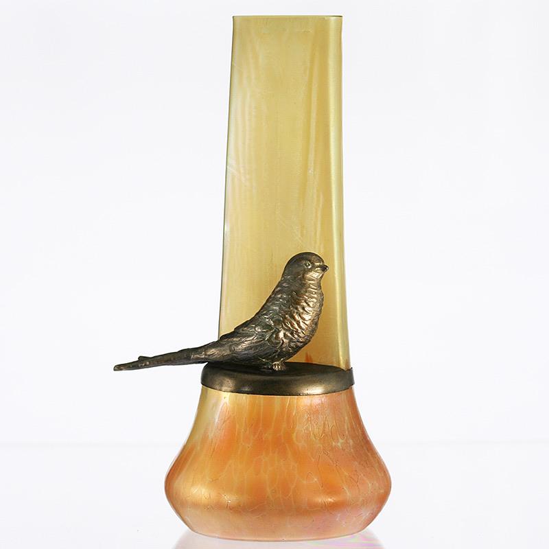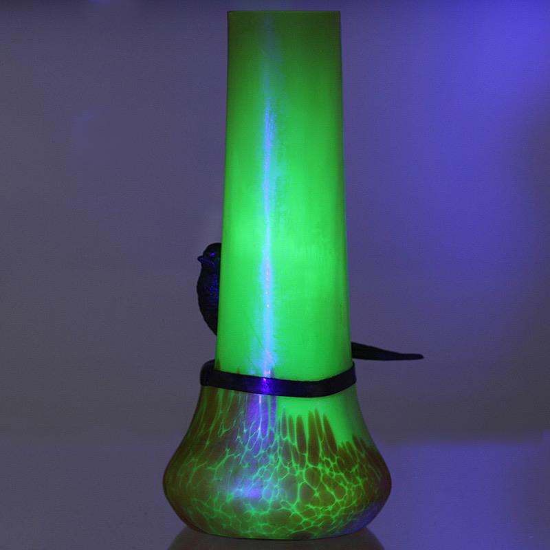 c.1905 Poschinger Vaseline uranium glass vase with bird mount