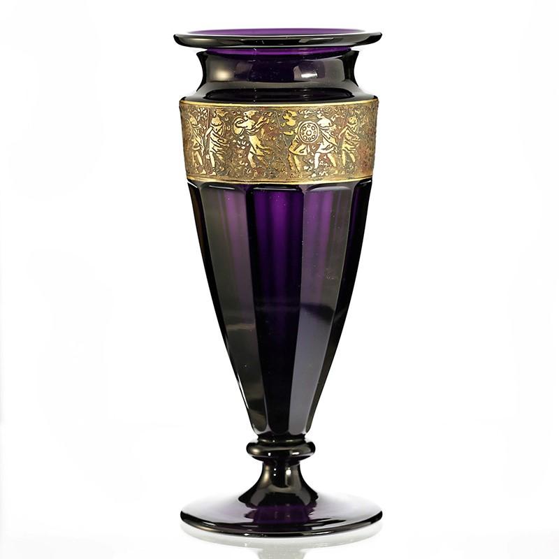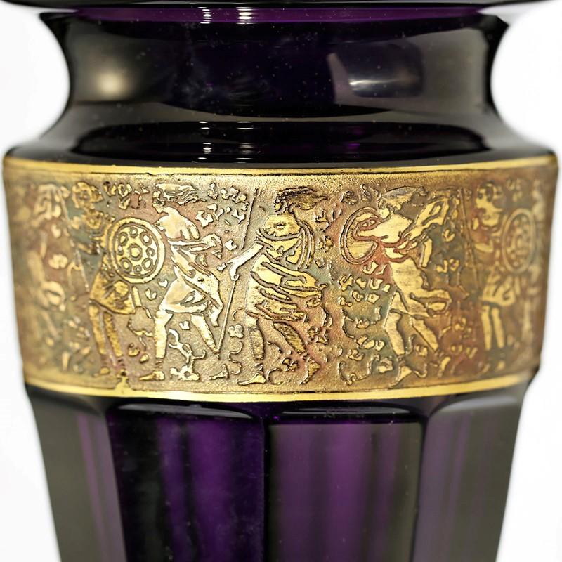 ENQUIRE ABOUT C.1910 MOSER KARLSBAD AMETHYST GLASS VASE WITH AMAZONIAN FRIEZE, SIGNED