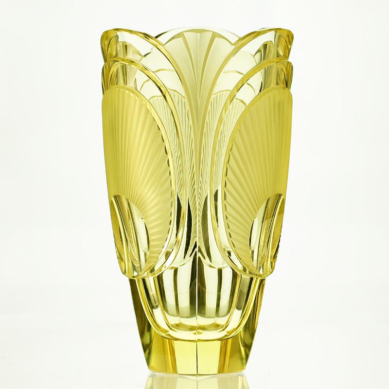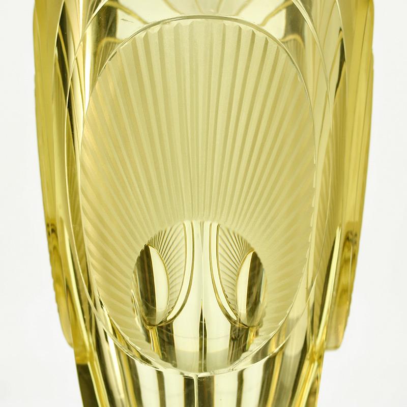 ENQUIRE ABOUT C.1920S-30S CITRINE RELIEF MOULDED & CUT DECO GLASS VASE, RUDOLF HLOUSEK EISENBROD
