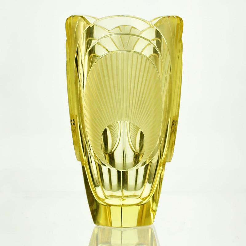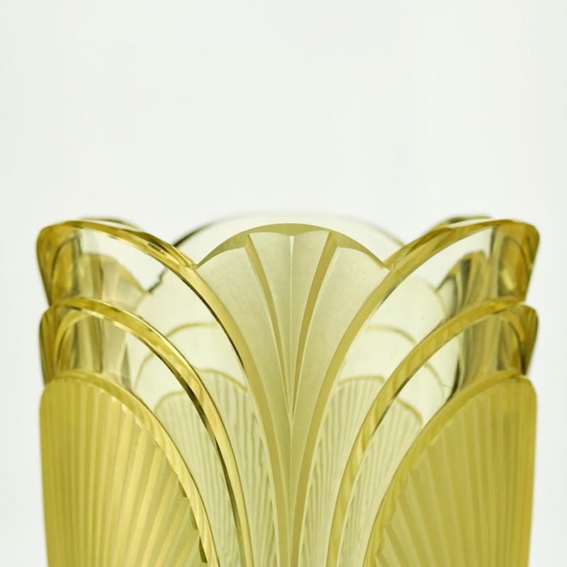 c.1920s-30s citrine relief moulded & cut Deco glass vase, Rudolf Hlousek Eisenbrod